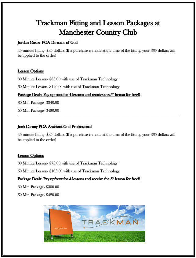 Manchester Country Club offers all types of lessons including private and group instruction. Our PGA Professional staff is available to help you with any part of your game. Putting, short game, full-swing and course management. We also offer state of the art Video Swing Analysis that allows you to take your lesson home to review! Call the golf shop for details, 860-646-0226 x1